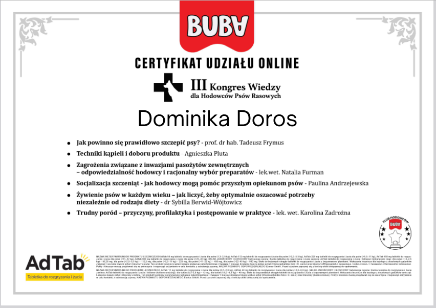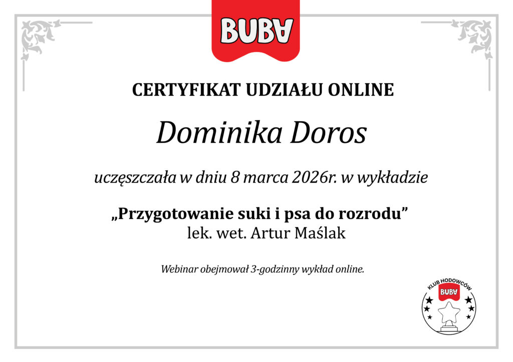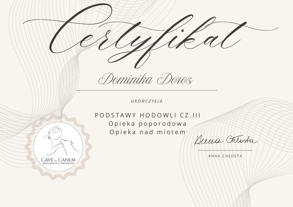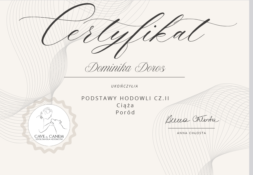 Człowiek uczy się całe życie i nie powinien popadać w stagnację. Podnosimy zatem swoje kwalifikacje korzystając z dostępnych form edukacyjnych. Sięgamy po publikacje, szperamy w internecie, rozmawiamy z lekarzami weterynarii, uczestniczymy w szkoleniach prowadzonych przez wysokiej klasy specjalistów. Zdobyta wiedzę w miarę możliwości przekazujemy także przyszłym nabywcom